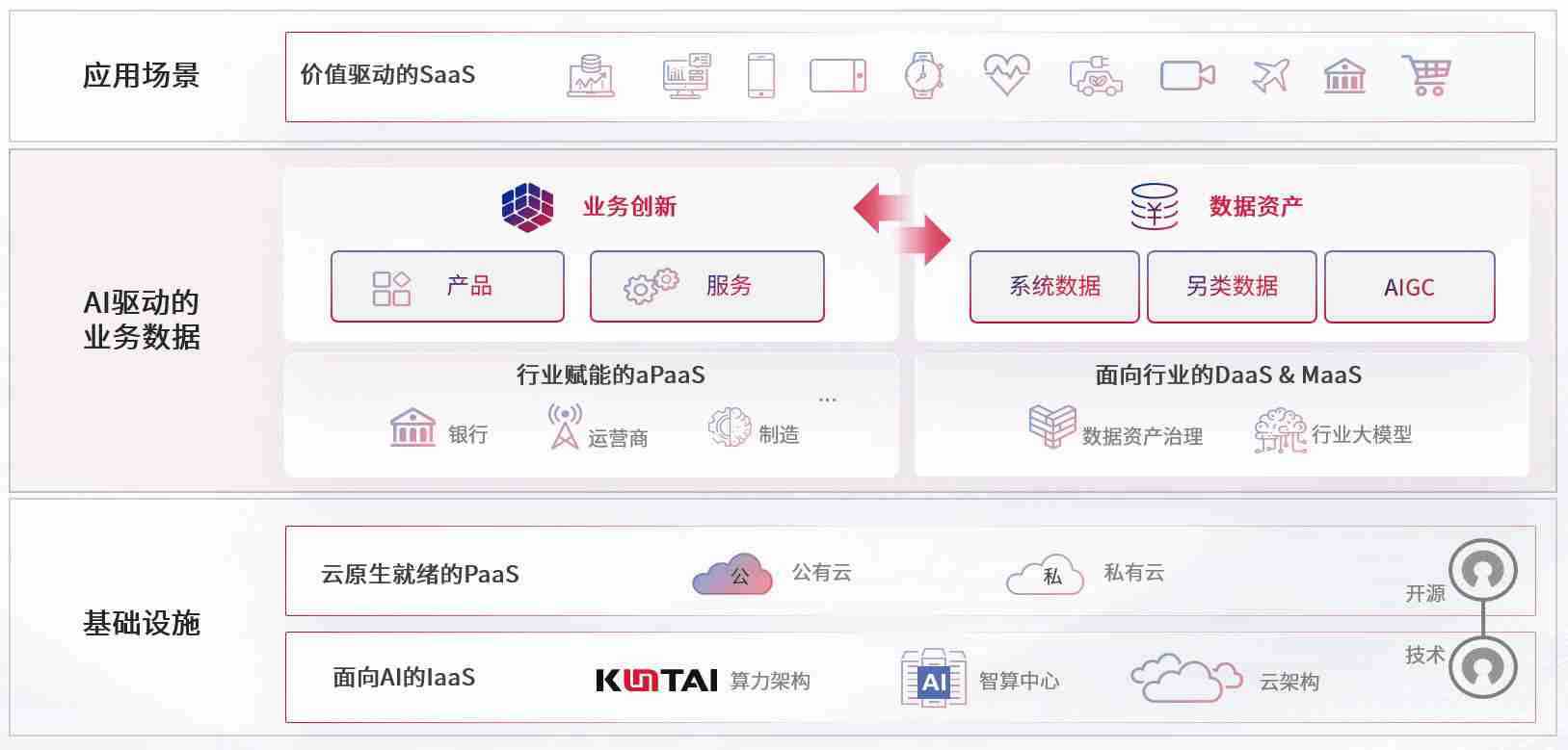 数字时代,,,围绕企业数字化转型的关键要素,,欧博代理平台数码开创性的提出数云融合战略和技术体系框架,,着力在云原生、、、数字原生、、、AI原生和信创产业上架构产品和服务能力,,,,为处在不同数字化转型阶段的快消零售、、汽车、、金融、、、医疗、、政企、、、、教育、、运营商等行业客户提供泛在的敏捷IT能力和融合的数据驱动能力,,,构建跨界融合创新的数字业务场景和新业务模式,,助力企业级客户建立面向未来的核心能力和竞争优势,,全面推动社会的数字化、、、、智能化转型升级。。